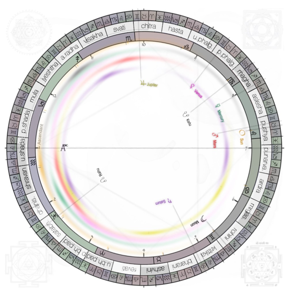 My Mercury is in counter-supportive conditions for fluidity – it is in Magha (structure, hierarchy and authority), in the Leo (authority) in the 8th (scrutiny, not equality).